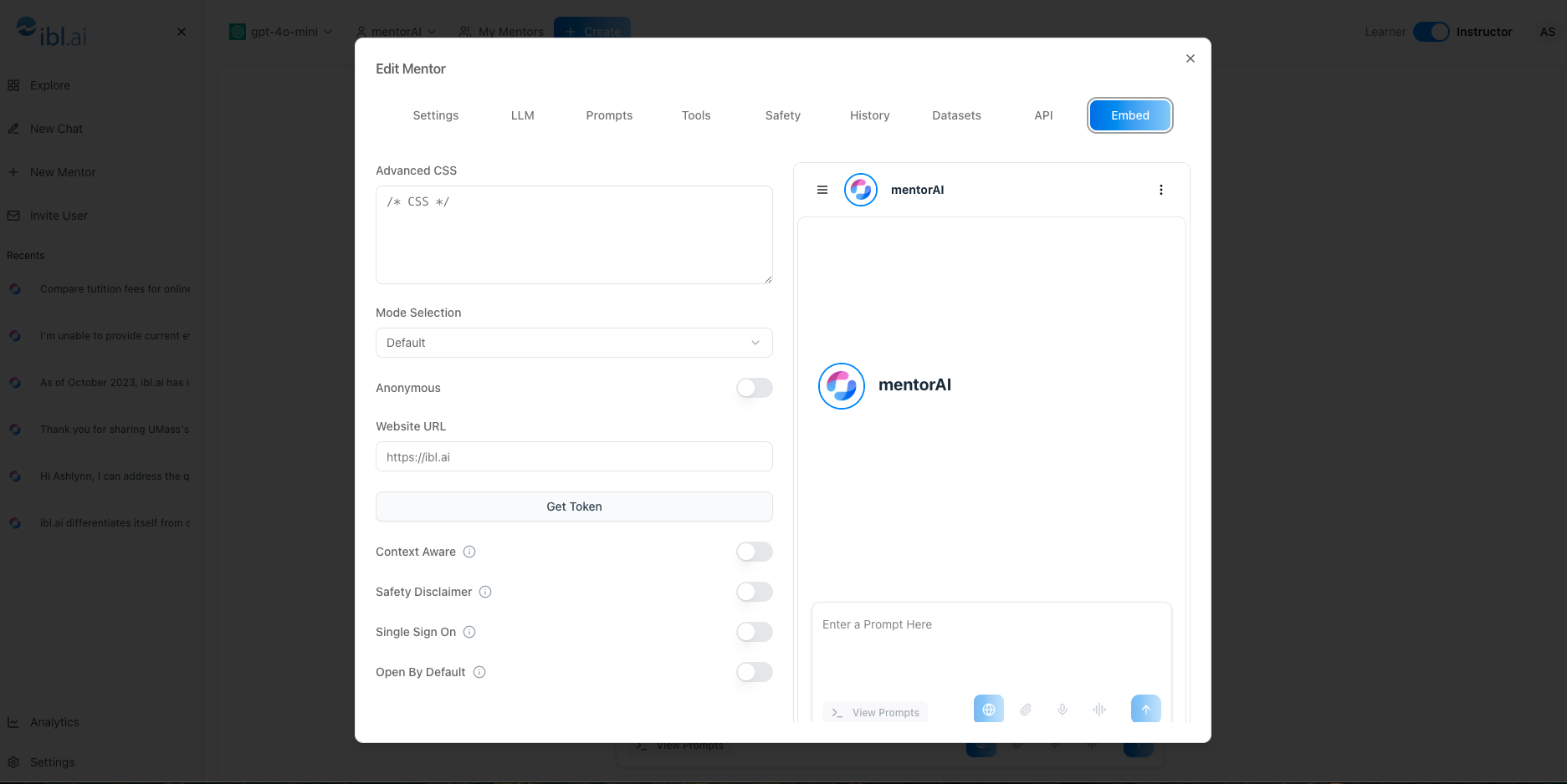 With the Embed tool, you can deliver mentorAI exactly where learners need itâstyled to match your site, configured for your privacy requirements, and equipped with the features that best serve your audience.