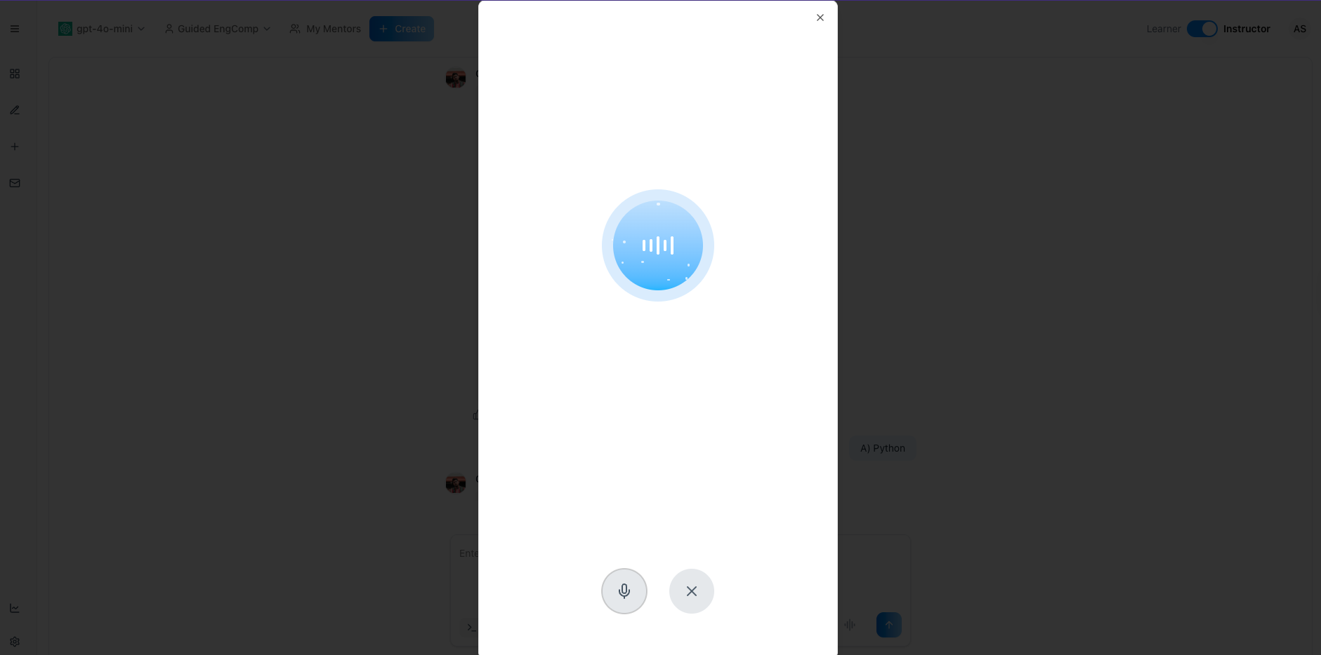 Click the microphone icon (voiceâinput button). A phoneâcallâstyle window opens, and the mentor greets you.